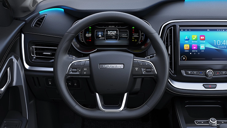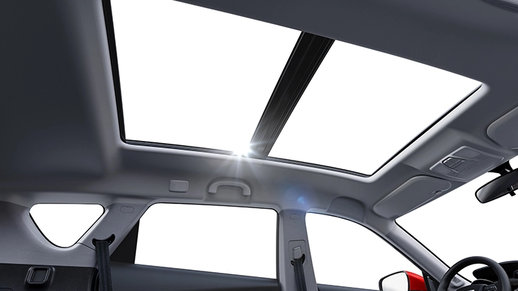 O equipamento premium do X70 torna o seu interior mais convidativo. Desfrute do ecrã de 10” com conexão ao smartphone, por USB ou por Bluetooth. O seu tecto panorâmico ultra largo de 1.1 m2 garante visão mais ampla, óptima iluminação diurna e boa ventilação.