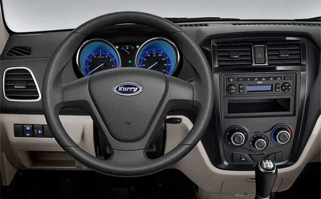 O interior da Karry Q22L proporciona bem-estar e tranquilidade. A nova carrinha que vai percorrer as estradas de Cabo Verde está equipada com ar condicionado manual, rádio e janelas dianteiras eléctricas. Os bancos em tecido podem ser ajustáveis manualmente,  tanto pelo condutor como  pelos passageiros.